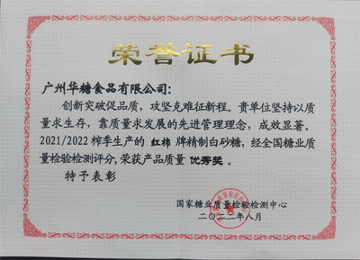华糖人亲历了甜蜜事业从生存、竞争、压力、胜出、有序经营到优质品牌的步步发展;亲历了制糖标准化从萌芽到规范的甜酸苦辣,华糖制糖工艺技术指标在国内已处于领先地位,是国内主要精制糖供应商。荣誉的获得是对华糖的肯定,更是对华糖人的鞭策。未来,华糖公司将深耕制造业,继续打造自主品牌,为广州实现老城市新活力、“四个出新出彩”做出华糖新的贡献。(华糖公司 供稿 梁亚钊、摄影 卢振恒)