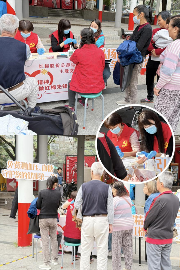 本次“便民集市”为居民提供了一系列贴心服务,有义剪、头疗、测量血糖、血压、口腔义诊等,服务群众达500人次。402永利集团官网入口党员志愿者身体力行,用爱心与担当汇聚成春日里最温暖的力量。她们身着红马甲,分工有序,有的热情引导居民排队,有的熟练地为居民绑上血压袖带、采血检测,并叮嘱高血压、高血糖居民合理饮食、适量运动。活动现场吸引了众多居民参与,大家纷纷为党员们的贴心服务点赞。